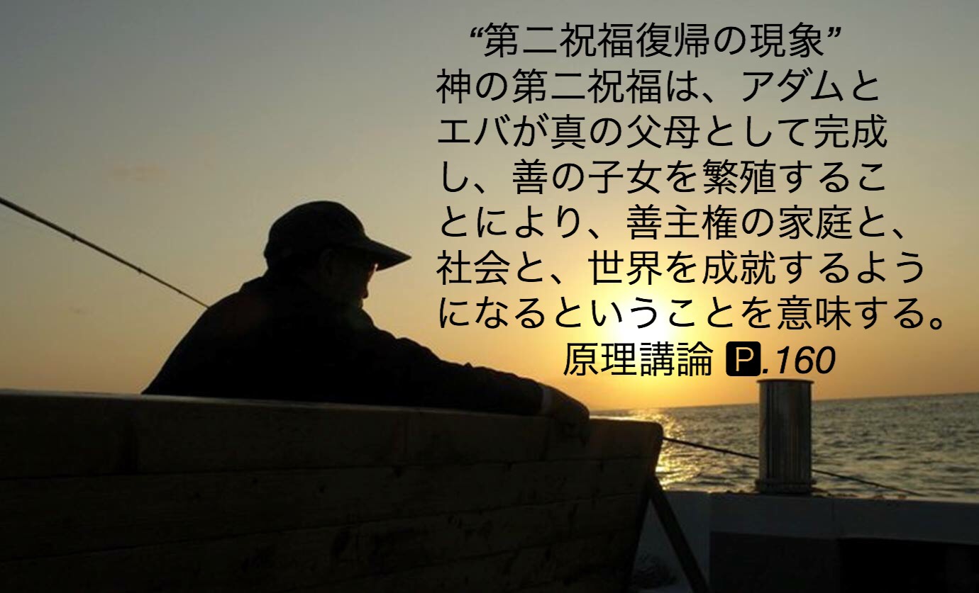 神の第二祝福は、アダムと エバが真の父母として完成 し、善の子女を繁殖するこ とにより、善主権の家庭と、 社会と、世界を成就するようになるということを意味する。